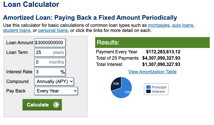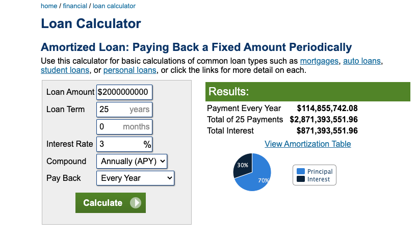 And on similar lines, Alpha Labs would need to pay ~$114 million every year for the next 25 years for every $2 billion they draw from their capital line during the first 5 years of construction.