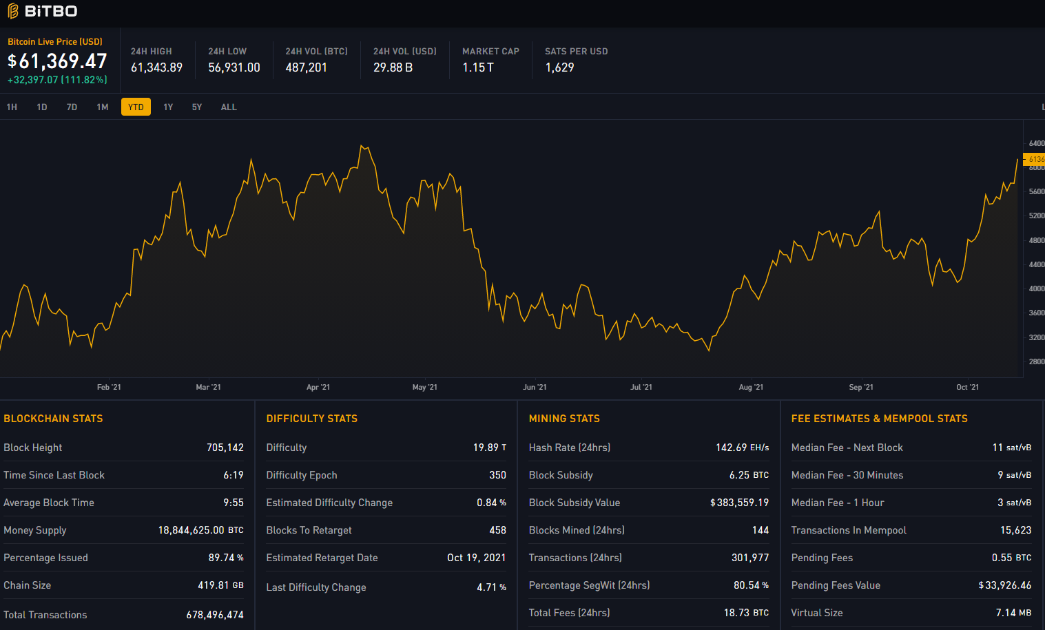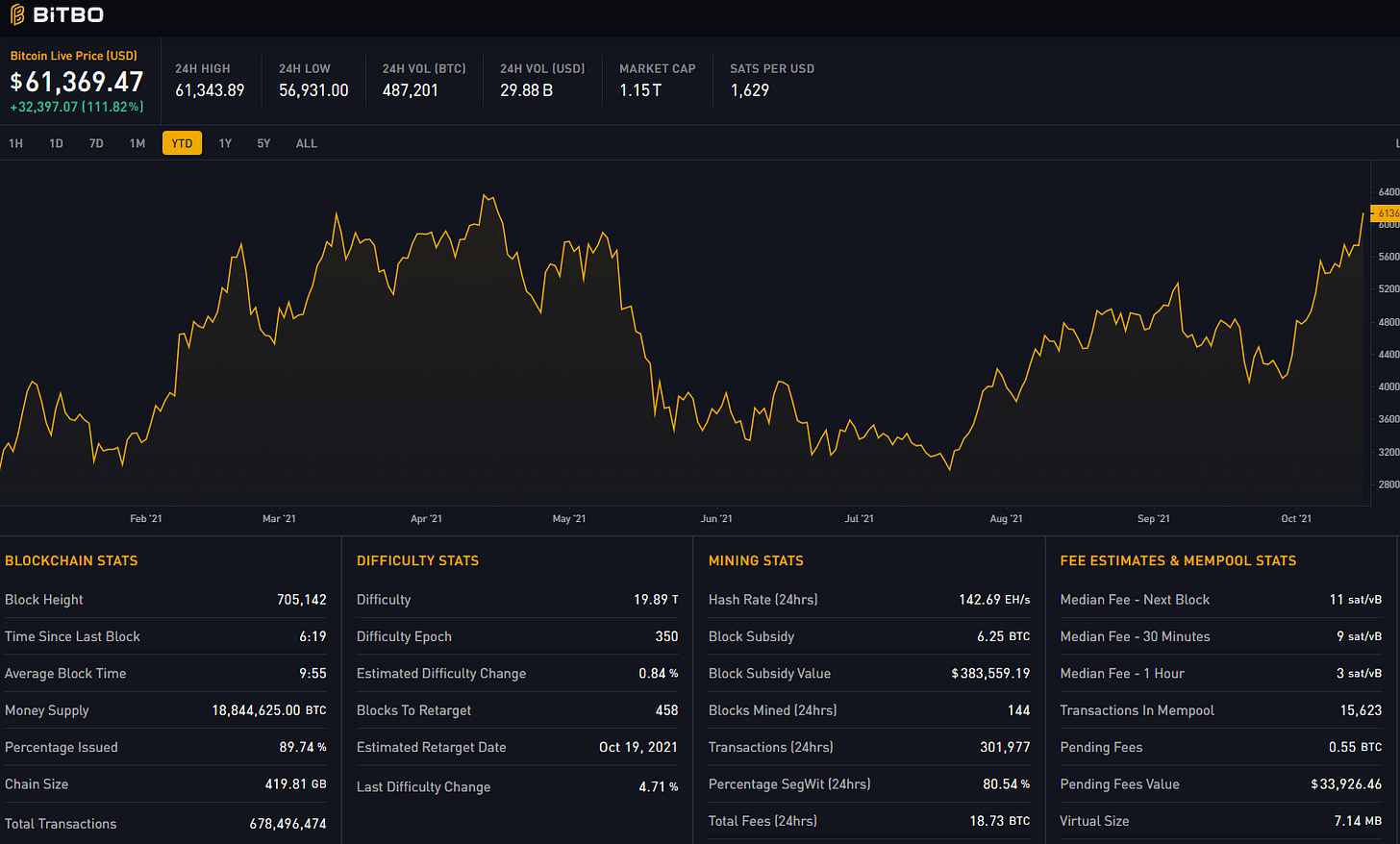 Next, let us look at some bitcoin market stats through the BitBo Dashboard (https://bitbo.io/ ).